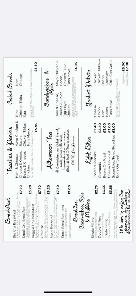 Located at 87 Market St, Church Gresley, Swadlincote DE11 9PN, Cafe Cru stands as a testament to the charm of local cafes. This family-run establishment presents a welcoming atmosphere for all customers. The casual and cozy vibe offers an inviting retreat, perfect for anyone looking to enjoy quality coffee or a light meal. Accessible to all, the cafe includes wheelchair-accessible entrance and facilities, ensuring everyone feels at home.